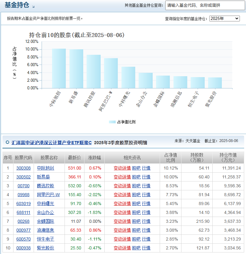 $汇添富中证沪港深云计算产业ETF联接C$一方面,基金C类费率友好,无申购费,适合小额定投(每月固定投入小额资金),通过定投平滑市场短期波动,降低投资成本,适合资金量不大、想长期积累资产的投资者;另一方面,基金申赎灵活,适合对云计算、AI板块有一定判断,想进行波段操作、捕捉短期板块行情的投资者。此外,对于持仓中以债券、货币基金为主,希望配置一定比例成长型资产、优化持仓结构、分散风险的投资者,该基金也可作为优质的配置标的,提升整体持仓的长期收益潜力。