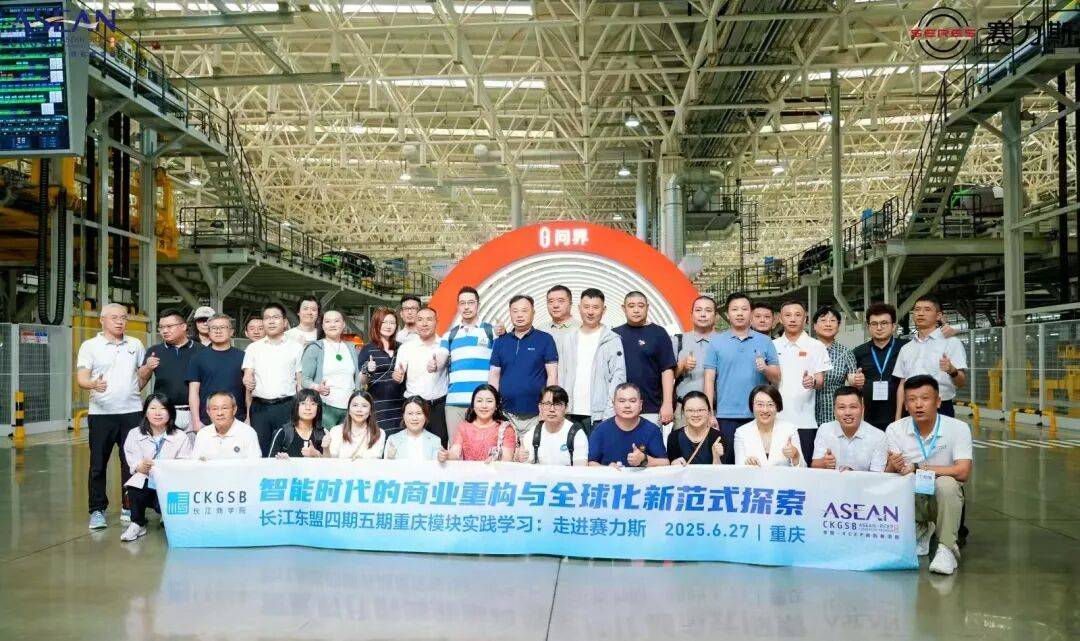 长江东盟-RCEP领航者项目走进赛力斯。来自东南亚的企业家及有志于全球化布局的企业代表,实地考察中国智能汽车产业的技术路径与制造体系,探寻其参与全球竞争的结构性优势与出海机遇。